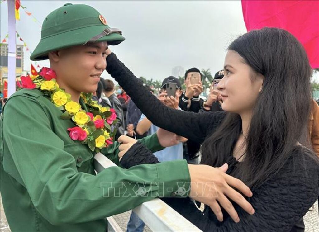 Thanh niên Đất Tổ hăng hái lên đường nhập ngũ. (Ảnh: Trung Kiên/TTXVN)