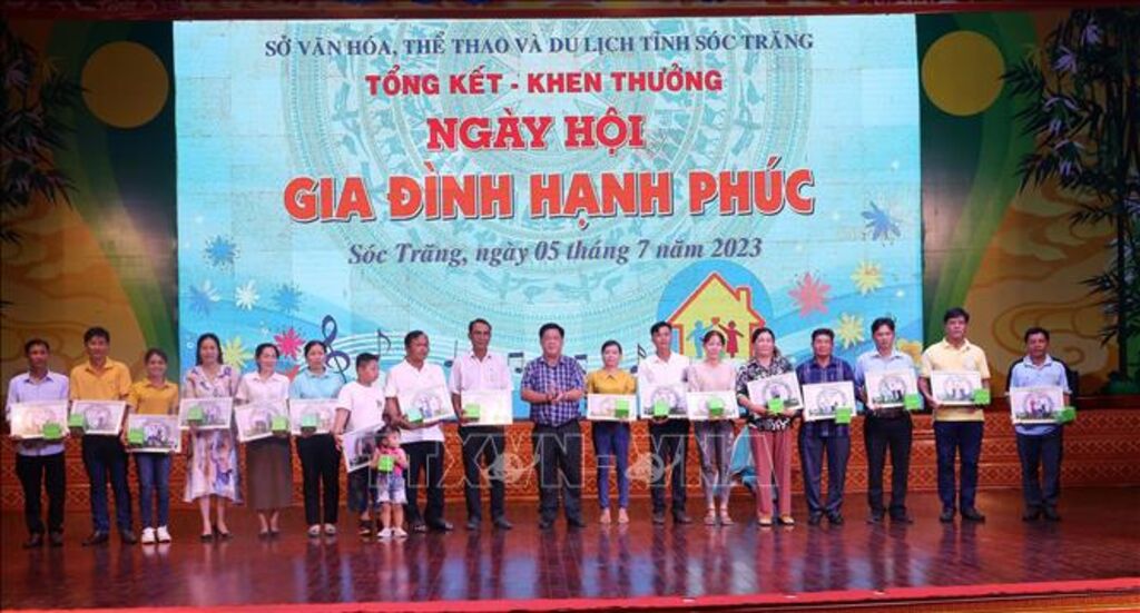 TTXVN - Ngày 5/7, Sở Văn hóa, Thể thao và Du lịch tỉnh Sóc Trăng tổ chức Ngày hội Gia đình hạnh phúc năm 2023 với nhiều hoạt động sôi nổi. 109 gia đình tiêu biểu đến từ các huyện, thị xã, thành phố trong tỉnh đã tham gia Ngày hội.