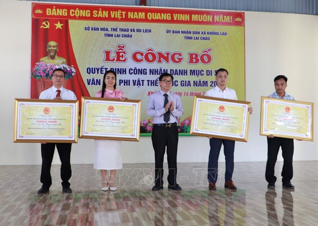 Lễ công bố Quyết định và trao chứng nhận Di sản văn hóa phi vật thể quốc gia năm 2025 cho tỉnh Lai Châu được Cục Di sản văn hóa (Bộ Văn hóa, Thể thao và Du lịch) phối hợp với Sở Văn hóa, Thể thao và Du lịch tỉnh Lai Châu và UBND xã Khổng Lào tổ chức ngày 14/7.