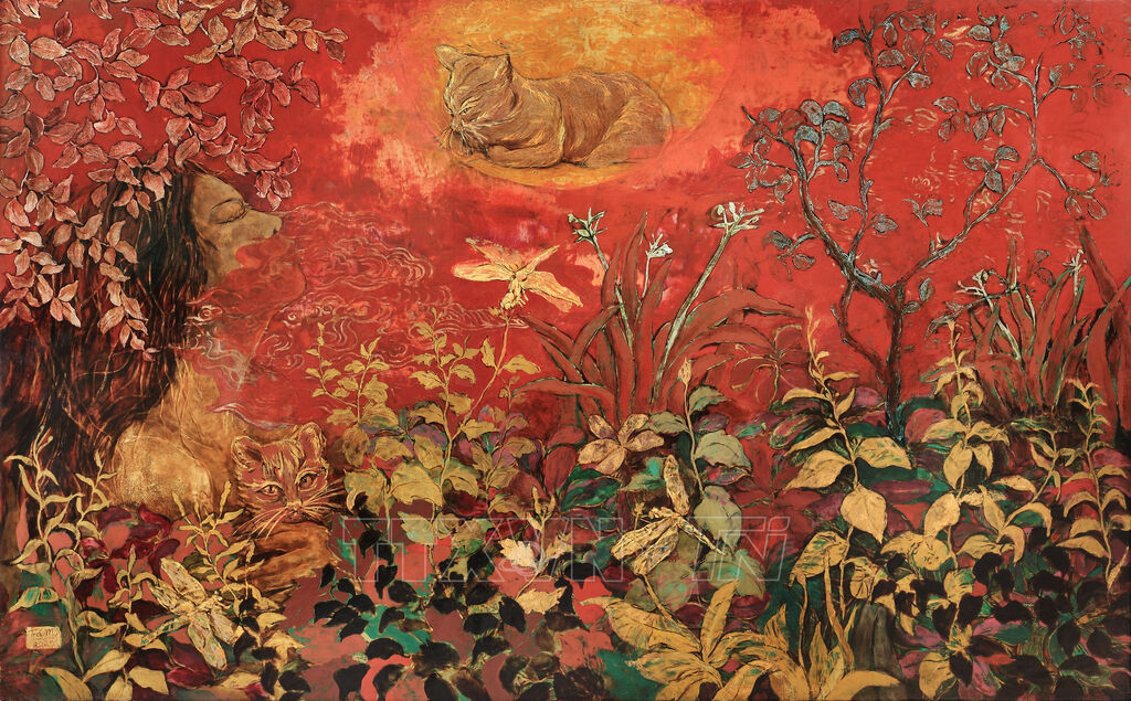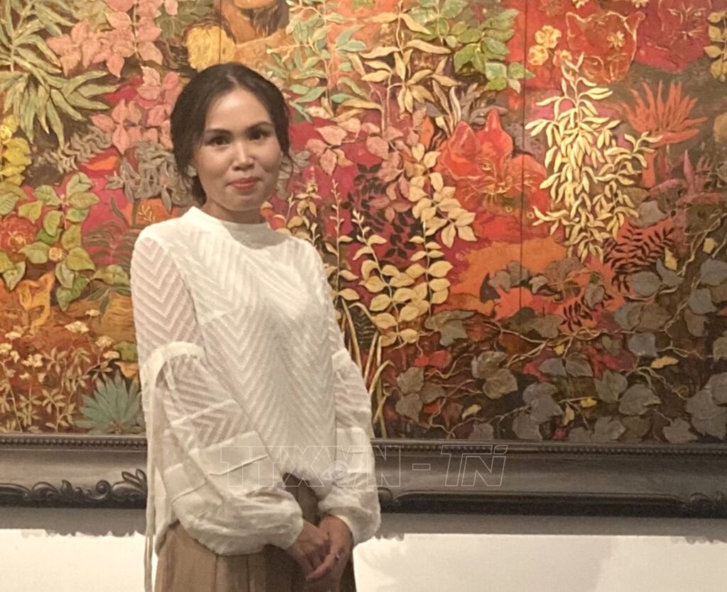 Họa sĩ Phạm Trà My chia sẻ, chất liệu sơn mài giúp chị truyền tải trọn vẹn những trạng thái cảm xúc sâu kín trong sáng tác. Đặc tính thâm trầm, khó chiều nhưng giàu nội lực, không cần phô trương hình thức mà vẫn toát lên “khí chất” riêng, phù hợp với tinh thần nghệ thuật mà chị theo đuổi.
