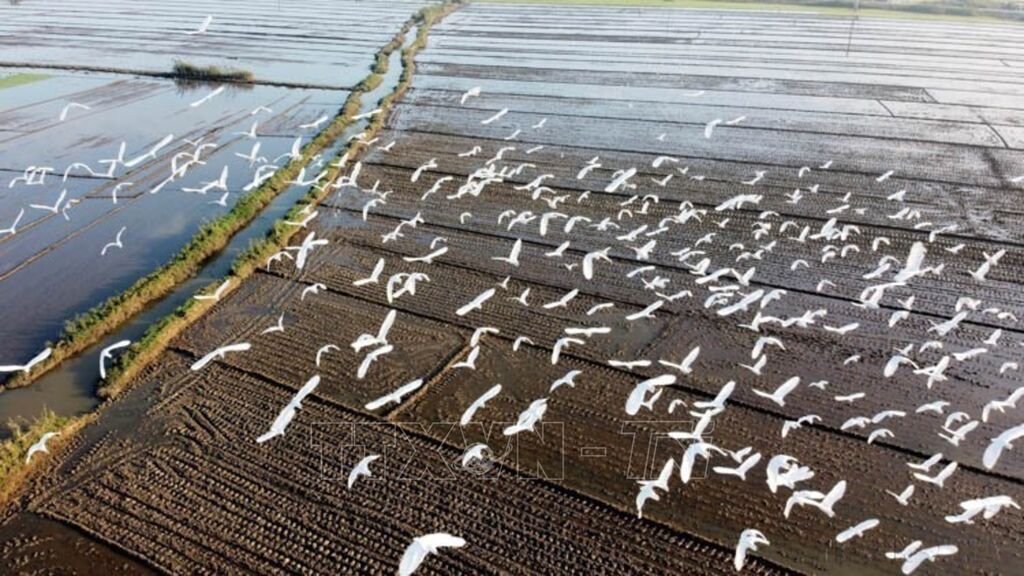 Trên những cánh đồng ở tỉnh Thừa Thiên-Huế đang có rất nhiều đàn chim, cò kéo về, tìm theo các kênh mương, thửa ruộng đang cạn nước hoặc ruộng lúa vừa xuống giống để kiếm ăn. Việc có nhiều đàn chim, cò kéo về kiếm ăn báo hiệu môi trường sinh thái ở địa phương này đang tốt dần lên (2020).