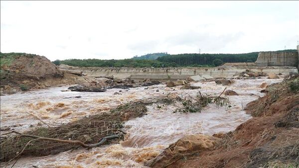 Hiện trường vụ vỡ đập thủy điện Ia Glae 2 ở huyện Chư Prông, tỉnh Gia Lai. (Ảnh: TTXVN phát)