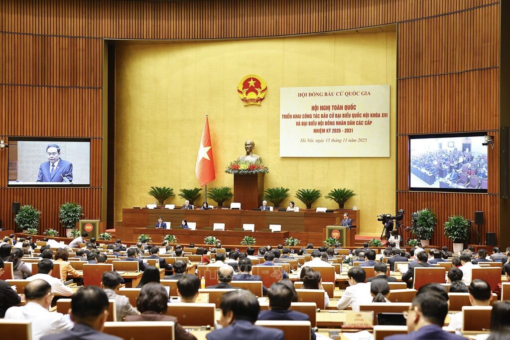 Sáng 15/11, tại Hội trường Diên hồng, Nhà Quốc hội, Hội đồng Bầu cử quốc gia tổ chức Hội nghị toàn quốc quán triệt Chỉ thị của Bộ Chính trị triển khai công tác bầu cử đại biểu Quốc hội khóa XVI và đại biểu Hội đồng nhân dân các cấp nhiệm kỳ 2026 - 2031. Hội nghị được tổ chức theo hình thức trực tiếp kết hợp trực tuyến đến các điểm cầu cấp tỉnh, cấp xã của 34 tỉnh, thành phố trong cả nước.