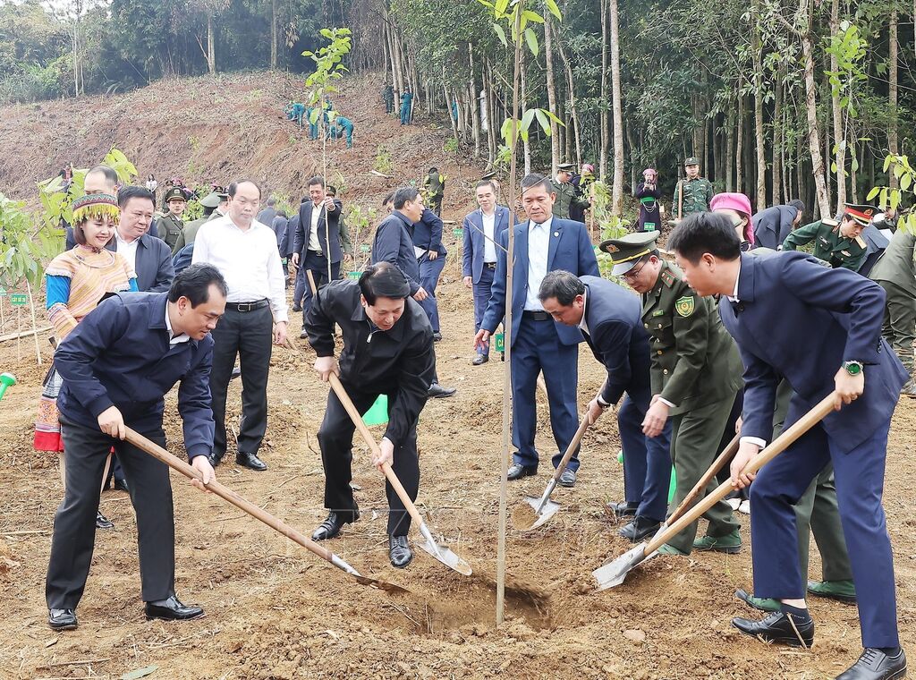 Ngày 23/2, tại Lào Cai, Chủ tịch nước Lương Cường dự lễ phát động và kêu gọi đưa phong trào trồng cây đi vào chiều sâu, thực chất, gắn với phát triển kinh tế xanh, kinh tế tuần hoàn và mục tiêu phát thải ròng bằng “0” vào năm 2050. Nhắc lại truyền thống được Chủ tịch Hồ Chí Minh khởi xướng cách đây 66 năm, Chủ tịch nước Lương Cường nhấn mạnh trồng cây, gây rừng là khoản đầu tư chiến lược lâu dài, vừa tạo sinh kế bền vững, vừa bảo đảm an ninh sinh thái và chủ quyền quốc gia. Ngay sau lễ phát động, các đại biểu đã trồng cây tại khu vực dự án Công viên văn hóa Lào Cai.