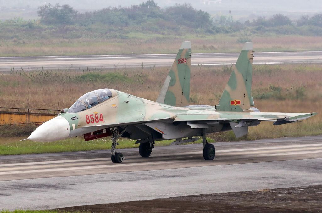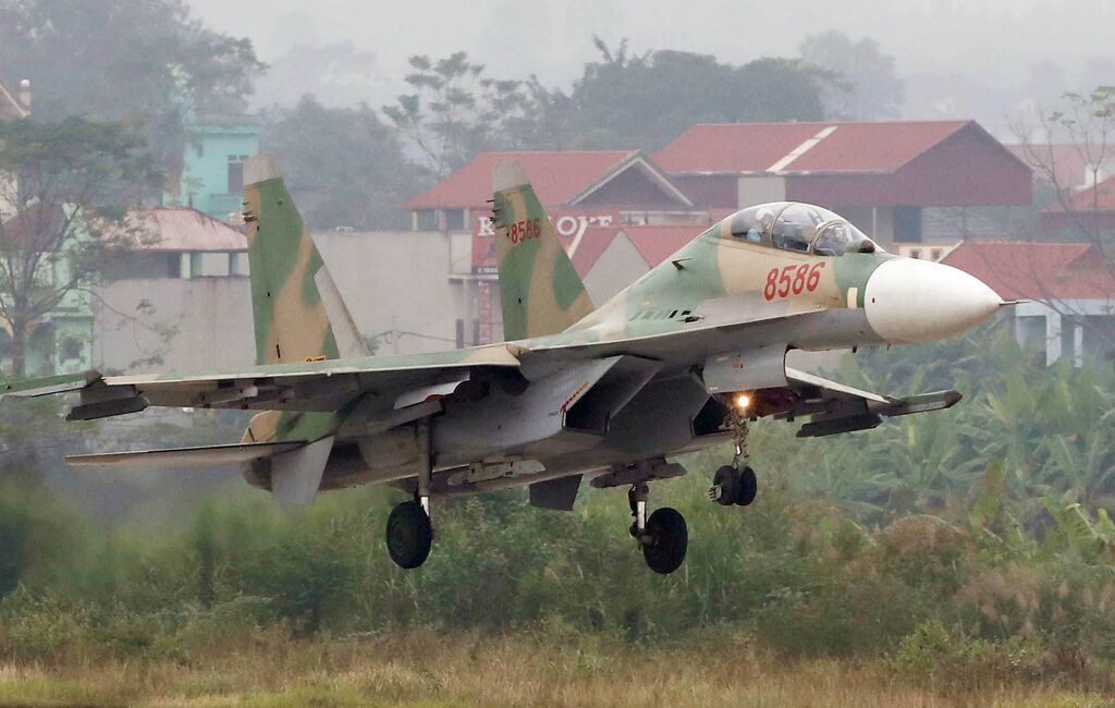 Máy bay Su30 hạ cánh sau khi bay trình diễn trên không phục vụ Triển lãm Quốc phòng quốc tế 2022. (Ảnh: Trọng Đức/TTXVN)