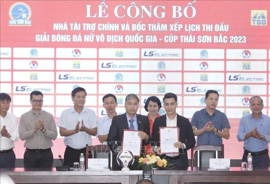 TTXVN - Ngày 2/10, tại Hà Nội, Liên đoàn Bóng đá Việt Nam tổ chức Lễ công bố Nhà tài trợ chính và Bốc thăm xếp lịch thi đấu Giải Bóng đá nữ Vô địch Quốc gia – Cúp Thái Sơn Bắc năm 2023.