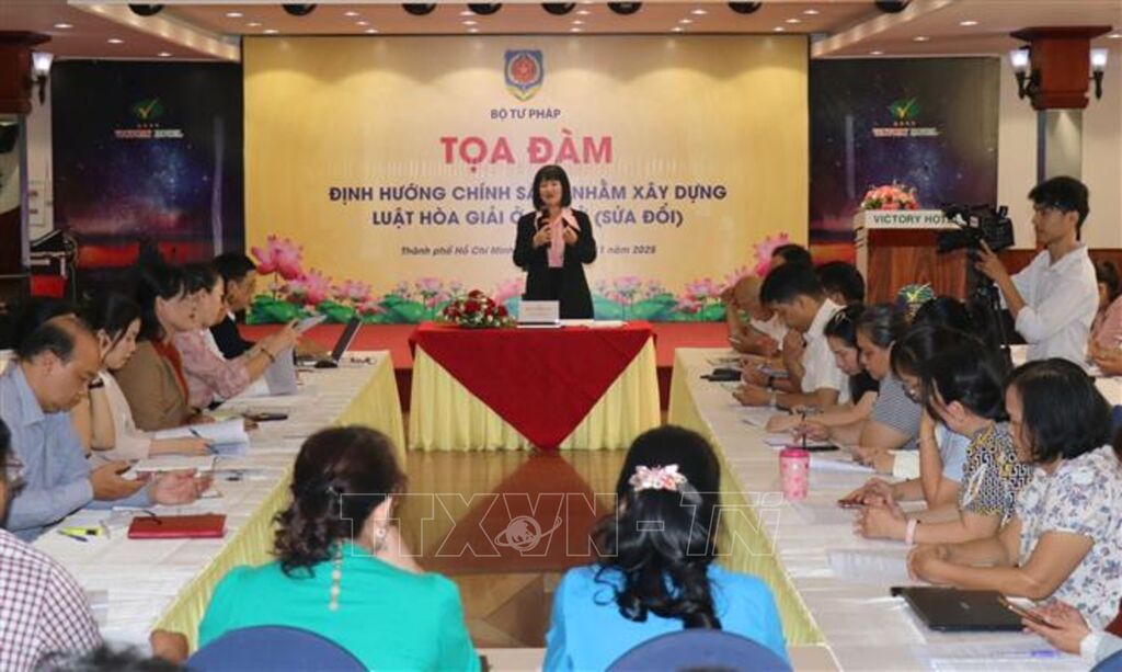 Sáng 25/11, tại Thành phố Hồ Chí Minh, Bộ Tư pháp tổ chức tọa đàm "Định hướng chính sách nhằm xây dựng Luật Hòa giải ở cơ sở (sửa đổi)”. Đây là dịp để các chuyên gia, cơ quan tư pháp và hòa giải viên cơ sở ở các tỉnh, thành phố phía Nam trao đổi thảo luận, góp ý nhằm đảm sự thống nhất, đồng bộ giữa dự thảo Luật với Hiến pháp, các văn bản quy phạm pháp luật trong hệ thống pháp luật Việt Nam, các cam kết quốc tế mà Việt Nam là thành viên và các định hướng lớn của Đảng về công tác hòa giải ở cơ sở.