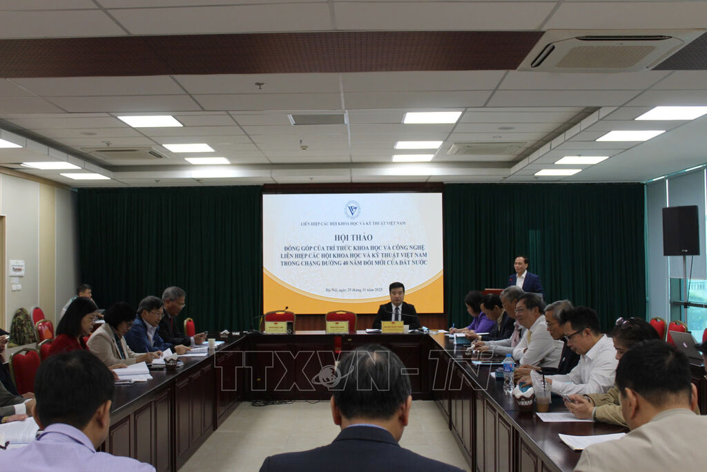 Ngày 25/11, tại Hà Nội, Liên hiệp các Hội Khoa học và Kỹ thuật Việt Nam tổ chức Hội thảo chủ đề "Đóng góp của trí thức khoa học và công nghệ Liên hiệp các Hội Khoa học và Kỹ thuật Việt Nam trong chặng đường 40 năm đổi mới của đất nước" nhằm đánh giá những kết quả đạt được, chia sẻ kinh nghiệm và đề xuất giải pháp phát huy vai trò đội ngũ trí thức trong giai đoạn phát triển mới.