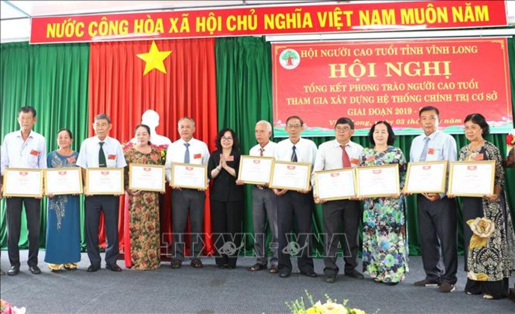 Từ những kết quả đạt được của người cao tuổi trong tham gia xây dựng hệ thống chính trị cơ sở giai đoạn 2019-2024, toàn tỉnh đã có 7 tập thể và 220 cá nhân được các cấp biểu dương, khen thưởng ở các cấp. Tại hội nghị, Trung ương Hội Người cao tuổi Việt Nam, UBND tỉnh Vĩnh Long, Ủy ban Mặt trận Tổ quốc Việt Nam tỉnh và Hội người cao tuổi tỉnh đã biểu dương, khen thưởng 50 cá nhân có thành tích tiêu biểu xuất sắc trong phong trào người cao tuổi tham gia xây dựng hệ thống chính trị cơ sở giai đoạn 2019-2024.