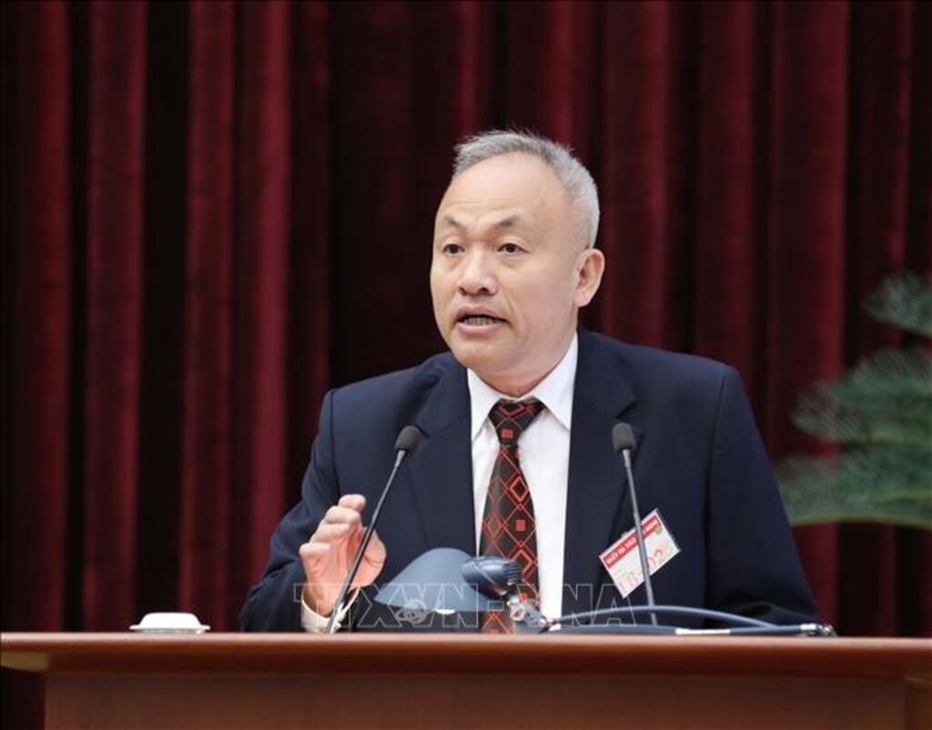 Tiến sĩ Phan Xuân Dũng, Chủ tịch Liên hiệp các Hội Khoa học Kỹ thuật Việt Nam tham luận tại hội nghị. (Ảnh: Phương Hoa/TTXVN)
