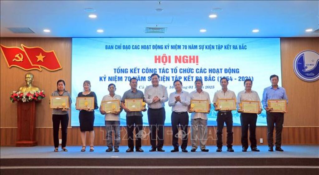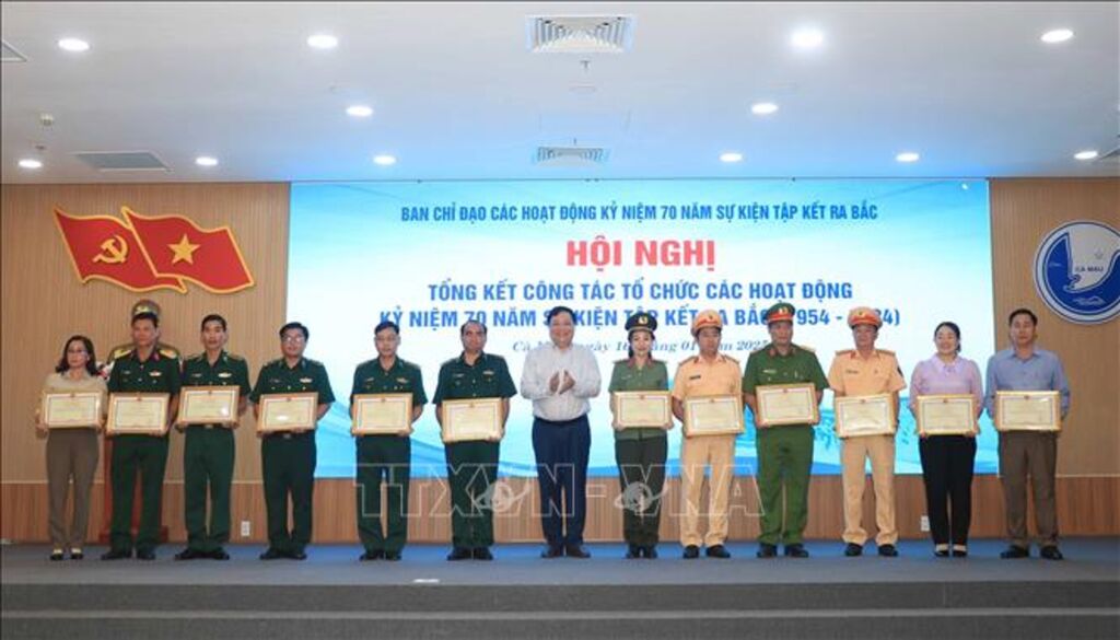 Dịp này, Chủ tịch UBND tỉnh tặng bằng khen cho cho 43 tập thể và 155 cá nhân có thành tích tiêu biểu, xuất sắc trong tổ chức, thực hiện các hoạt động kỷ niệm 70 năm sự kiện tập kết ra Bắc, các doanh nghiệp, cá nhân, tập thể tích cực đóng góp, hưởng ứng, tham gia các hoạt động trong lễ kỷ niệm 70 năm sự kiện tập kết ra Bắc (1954-2024) tại thị trấn Sông Đốc, huyện Trần Văn Thời./.