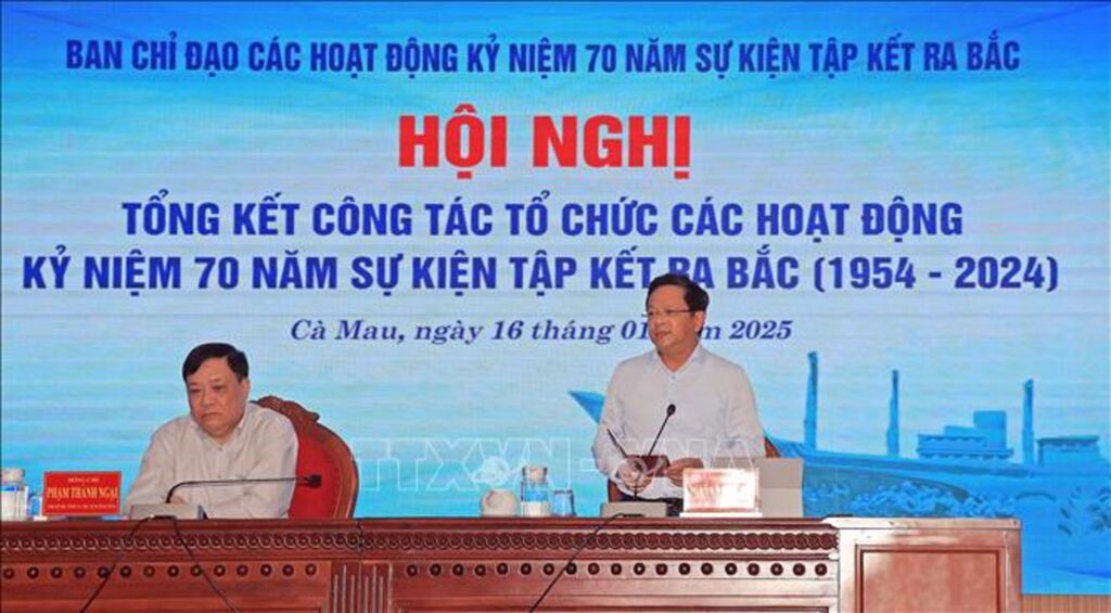 Chiều 16/1, UBND tỉnh Cà Mau đã tổ chức hội nghị tổng kết công tác thực hiện các hoạt động kỷ niệm 70 năm sự kiện tập kết ra Bắc (1954-2024). Theo đánh giá của Ban Chỉ đạo các hoạt động kỷ niệm 70 năm sự kiện tập kết ra Bắc tỉnh Cà Mau, chuỗi sự kiện kỷ niệm diễn ra đúng kế hoạch, đảm bảo về nội dung, chất lượng, hiệu quả cao trong công tác truyền thông. Với sự lan tỏa mạnh mẽ, sự kiện không chỉ góp phần giáo dục truyền thống cho thế hệ hôm nay mà còn tạo dấu ấn đậm nét đối với nhân dân địa phương, với nhân chứng lịch sử, lãnh đạo Đảng và Nhà nước và nhiều tỉnh, thành trong cả nước.