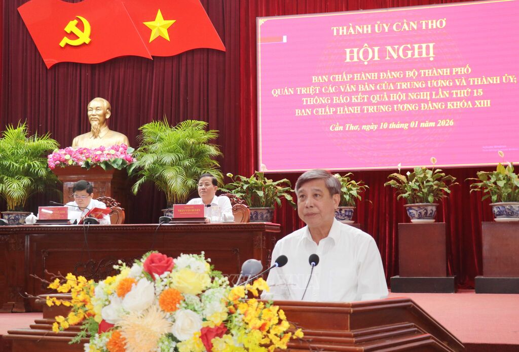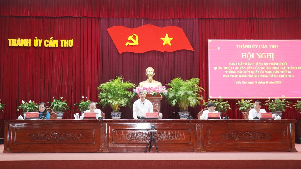 Tại hội nghị, lãnh đạo Thành ủy Cần Thơ đã quán triệt các nghị quyết chiến lược của Trung ương và kết quả triển khai thực hiện như: Nghị quyết 57-NQ/TW ngày 22/12/2024 về đột phá phát triển khoa học, công nghệ, đổi mới sáng tạo và chuyển đổi số quốc gia; Nghị quyết số 59-NQ/TW ngày 24/1/2025 của Bộ Chính trị về hội nhập quốc tế trong tình hình mới...; Nghị quyết Đại hội đại biểu Đảng bộ thành phố Cần Thơ lần thứ I, nhiệm kỳ 2025 - 2030; Chương trình công tác Quý I năm 2026 và một số nhiệm vụ trọng tâm của Thành ủy trong thời gian tới; thông tin nhanh về Hội nghị Ban Chấp hành Trung ương Đảng lần thứ 15; phát động thi đua trong toàn Đảng bộ triển khai thực hiện Nghị quyết đại hội Đảng bộ thành phố lần thứ I, nhiệm kỳ 2025 - 2030./.