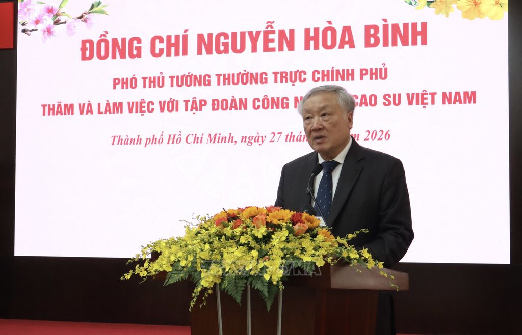 Chiều 27/2, tại Thành phố Hồ Chí Minh, Đoàn công tác Chính phủ do Phó Thủ tướng Thường trực Nguyễn Hòa Bình dẫn đầu đã đến thăm, làm việc với Tập đoàn Công nghiệp Cao su Việt Nam về tình hình sản xuất kinh doanh và định hướng phát triển giai đoạn tới. Cuộc làm việc diễn ra trong bối cảnh năm 2026 được xác định là năm đầu tiên thực hiện Kế hoạch phát triển kinh tế - xã hội 5 năm 2026-2030, với yêu cầu đổi mới mô hình tăng trưởng, nâng cao chất lượng và sức cạnh tranh của khu vực kinh tế nhà nước.