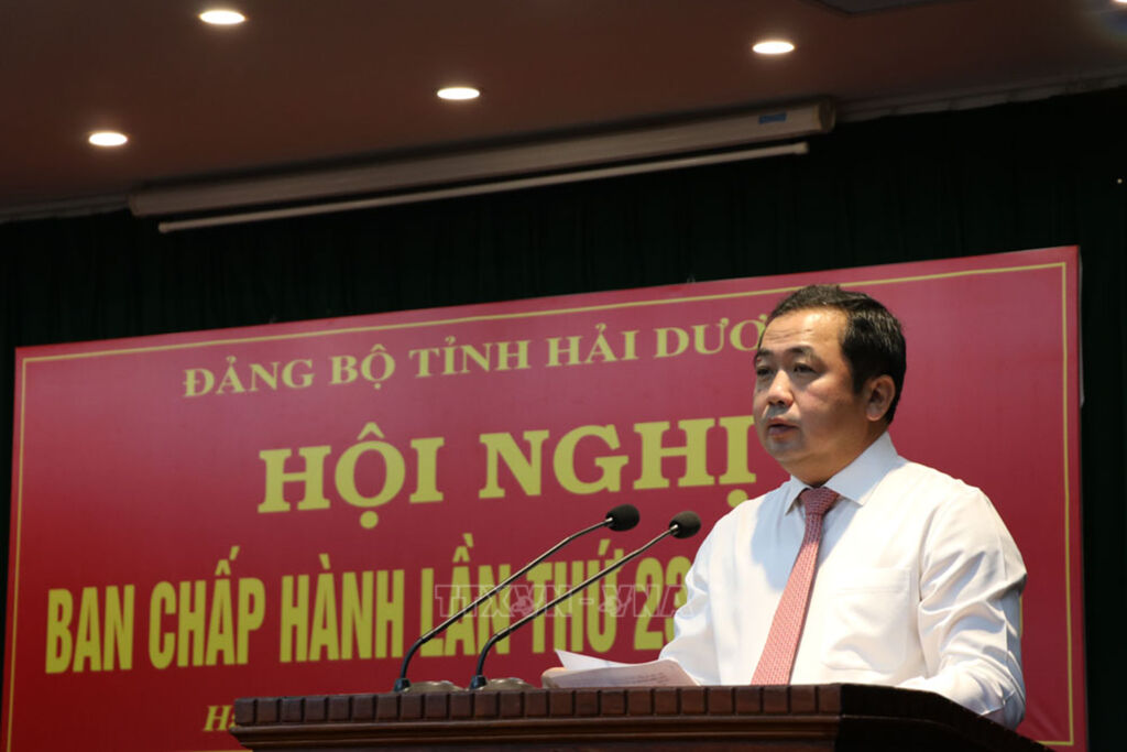 Ngày 4/4, Ban Chấp hành Đảng bộ tỉnh Hải Dương khóa XVII tổ chức hội nghị lần thứ 23 để nghe và cho ý kiến về dự thảo Báo cáo chính trị (lần 2) của Ban Chấp hành Đảng bộ tỉnh khóa XVII; tiến độ triển khai các Kết luận của Bộ Chính trị về sắp xếp tổ chức bộ máy trong hệ thống chính trị; nguyên tắc, tiêu chí, dự kiến việc sắp xếp, tổ chức lại đơn vị hành chính cấp xã; tình hình thực hiện kế hoạch phát triển kinh tế - xã hội quý I, nhiệm vụ trọng tâm quý II năm 2025.Ngày 4/4, Ban Chấp hành Đảng bộ tỉnh Hải Dương khóa XVII tổ chức hội nghị lần thứ 23 để nghe và cho ý kiến về dự thảo Báo cáo chính trị (lần 2) của Ban Chấp hành Đảng bộ tỉnh khóa XVII; tiến độ triển khai các Kết luận của Bộ Chính trị về sắp xếp tổ chức bộ máy trong hệ thống chính trị; nguyên tắc, tiêu chí, dự kiến việc sắp xếp, tổ chức lại đơn vị hành chính cấp xã; tình hình thực hiện kế hoạch phát triển kinh tế - xã hội quý I, nhiệm vụ trọng tâm quý II năm 2025.