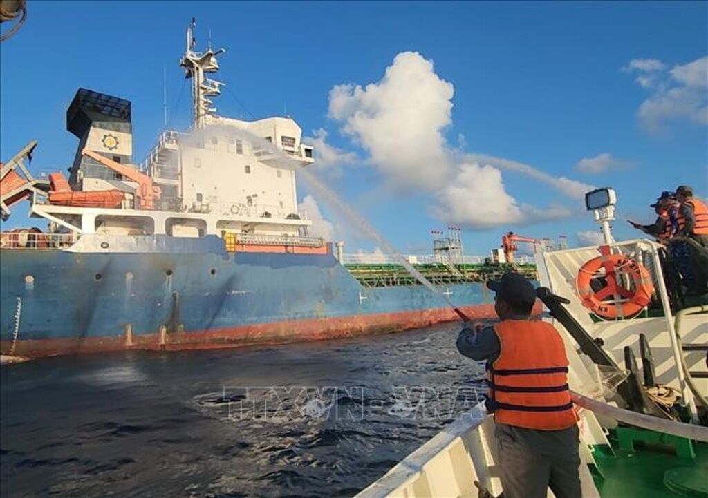 Cùng với đó, vào lúc 14 giờ 15 phút ngày 8/8, tàu KN 210 của Chi đội Kiểm ngư số 2, đang tuần tra trên vùng biển phía Nam cũng nhận được thông tin khẩn cấp. Đến 17 giờ 15 phút, tàu KN 210 đã tiếp cận hiện trường, phun vòi rồng dập lửa và khống chế đám cháy bước đầu. Lúc 19 giờ 55 cùng ngày 8/8, tàu cứu nạn chuyên dụng SAR 413 tiếp cận tàu Androusa, tiếp nhận 20 thuyền viên, tổ chức sơ cứu ban đầu và đưa về cảng Trung tâm Phối hợp tìm kiếm, cứu nạn Hàng hải khu vực III tại phường Phước Thắng, Thành phố Hồ Chí Minh./.
