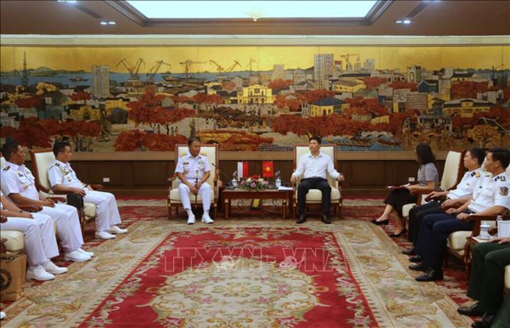 Tại buổi tiếp Chỉ huy tàu Hải quân Indonesia, Phó Chủ tịch UBND thành phố Hải Phòng Hoàng Minh Cường bày tỏ vui mừng về chuyến thăm, đặc biệt trong bối cảnh Việt Nam và Indonesia không ngừng thúc đẩy quan hệ Đối tác chiến lược lên tầm cao mới trên cơ sở quan hệ truyền thống lâu đời với nhiều lợi ích song trùng, chiến lược.