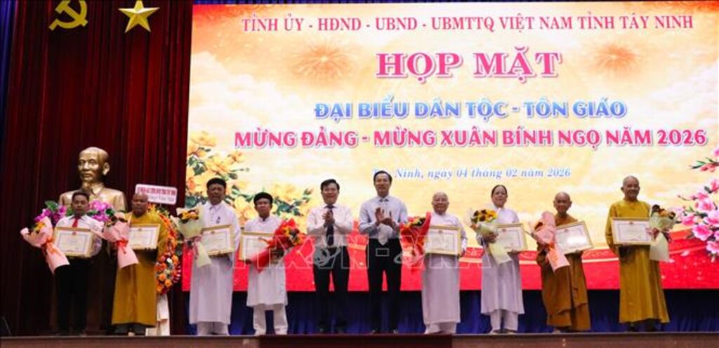 Trong không khí ấm áp, phấn khởi của những ngày đầu Xuân mới, sáng 4/2 tại phường Long An, Tỉnh ủy, HĐND, UBND và Ủy ban MTTQ Việt Nam tỉnh Tây Ninh tổ chức họp mặt đại biểu dân tộc, tôn giáo mừng Đảng – mừng Xuân Bính Ngọ năm 2026.