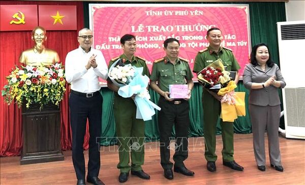 TTXVN - Ngày 6/12, tại thị xã Trảng Bàng, tỉnh Tây Ninh, Công an tỉnh Tây Ninh tổ chức trao giấy khen của Giám đốc Công an tỉnh cho Đại úy Nguyễn Toàn Quốc, Phó Trưởng Công an phường Lộc Hưng, thị xã Trảng Bàng và ba người dân đã có thành tích xuất sắc trong phong trào toàn dân bảo vệ an ninh Tổ quốc; dũng cảm, quyết tâm, quyết liệt trong truy bắt đối tượng cướp giật tài sản. Đó là: ông Nguyễn Thành Đô, 54 tuổi, ngụ phường Lộc Hưng, thị xã Trảng Bàng; anh Trịnh Việt Hiếu, 37 tuổi, ngụ xã Phước Đông, huyện Gò Dầu (Tây Ninh) và anh Nguyễn Duy Khương, 24 tuổi, ngụ xã Thanh Phước, huyện Gò Dầu.