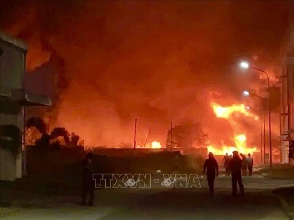 Vụ cháy chưa ghi nhận thiệt hại về người, nhưng nhiều tài sản trong nhà xưởng đã bị thiêu rụi.../.