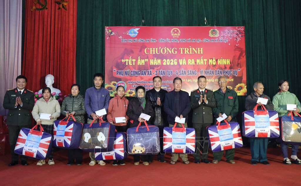 Trong không khí ấm áp của những ngày giáp Tết Nguyên đán Bính Ngọ 2026, ngày 23/1, Ban Phụ nữ Công an tỉnh Bắc Ninh phối hợp với Công an xã An Lạc tổ chức chương trình “Tết ấm”, mang mùa xuân yêu thương đến với đồng bào miền núi xã An Lạc (Bắc Ninh). Dịp này, mô hình “Phụ nữ Công an xã – 3 tận tụy – 4 sẵn sàng – vì Nhân dân phục vụ” cũng chính thức ra mắt, góp phần thắt chặt hơn nữa mối quan hệ gắn bó giữa lực lượng Công an với nhân dân ở cơ sở.