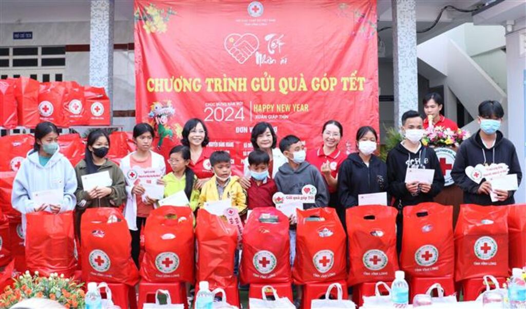 TTXVN - Với mong muốn “mang Tết đến với mọi người”, những ngày qua, các cấp Hội Chữ thập đỏ tỉnh Vĩnh Long khẩn trương triển khai phong trào “Tết nhân ái" Xuân Giáp Thìn 2024 với nhiều mô hình, cách làm mới huy động và kết nối rộng rãi sự tham gia, đóng góp của cộng đồng. Theo đó, các cấp Hội đã vận động hơn 15.000 suất quà Tết để hỗ trợ cho người nghèo, các hoàn cảnh khó khăn, yếu thế. Bên cạnh hỗ trợ quà, Hội cũng kịp thời bàn giao 8 căn nhà tình thương cho các hộ nghèo trên địa bàn, tạo điều kiện để gia đình đón Tết sung túc trong căn nhà mới.