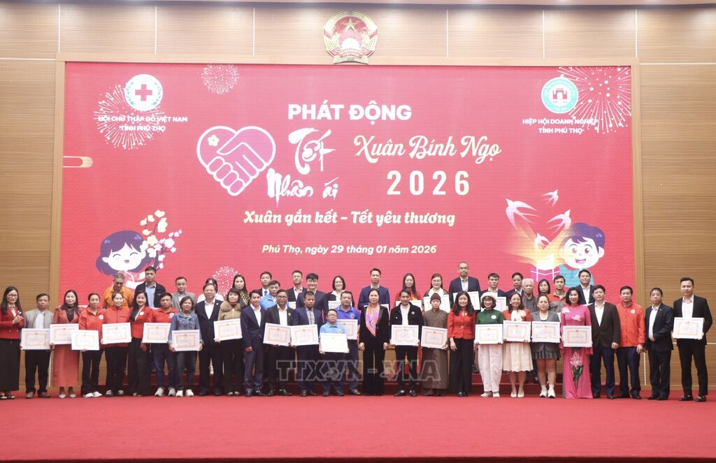 Chiều 29/1, Hội Chữ thập đỏ tỉnh Phú Thọ phối hợp với Hiệp hội Doanh nghiệp tỉnh tổ chức Lễ phát động Tết Nhân ái Xuân Bính Ngọ 2026 với chủ đề: Xuân gắn kết - Tết yêu thương.