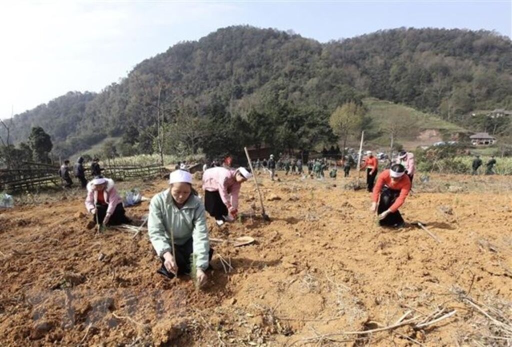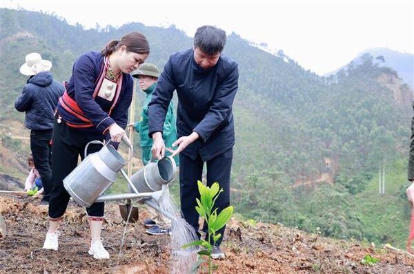 Hưởng ứng Tết trồng cây tại huyện Văn Chấn, Yên Bái. (Ảnh: Tuấn Anh/TTXVN)