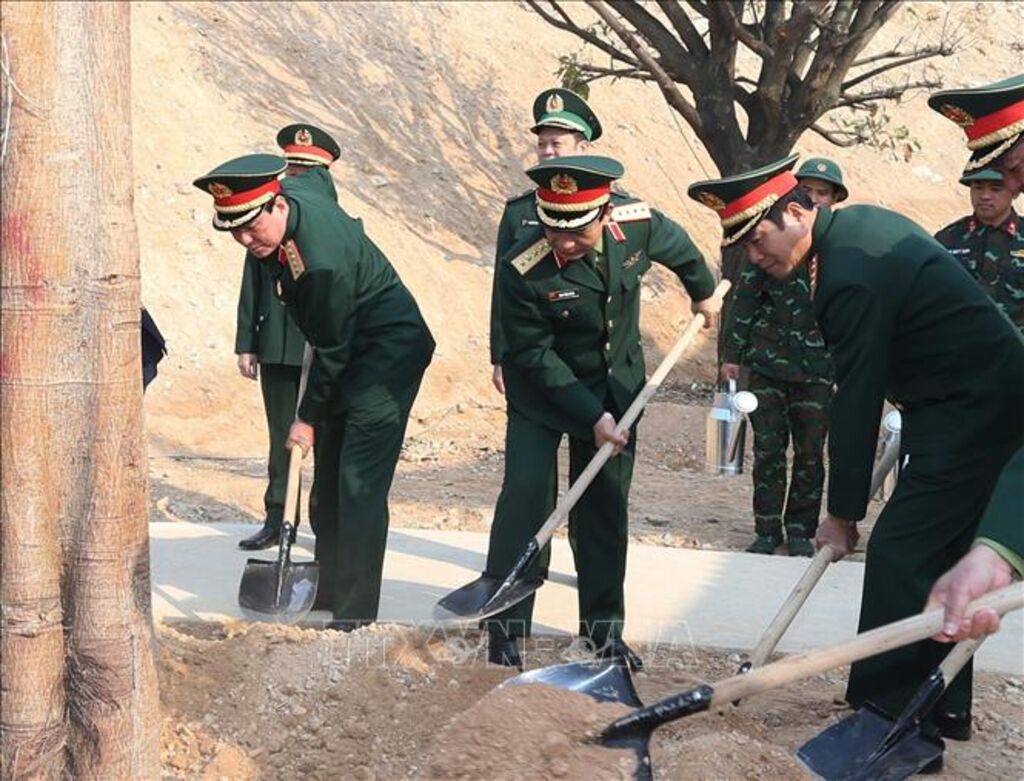 Đại tướng Phan Văn Giang, Bộ trưởng Quốc phòng cùng các đại biểu tham gia Tết trồng cây tại khu vực xây dựng Bảo tàng Lịch sử quân sự Việt Nam (quận Nam Từ Liêm, Hà Nội). (Ảnh: Hồng Pha - TTXVN phát)