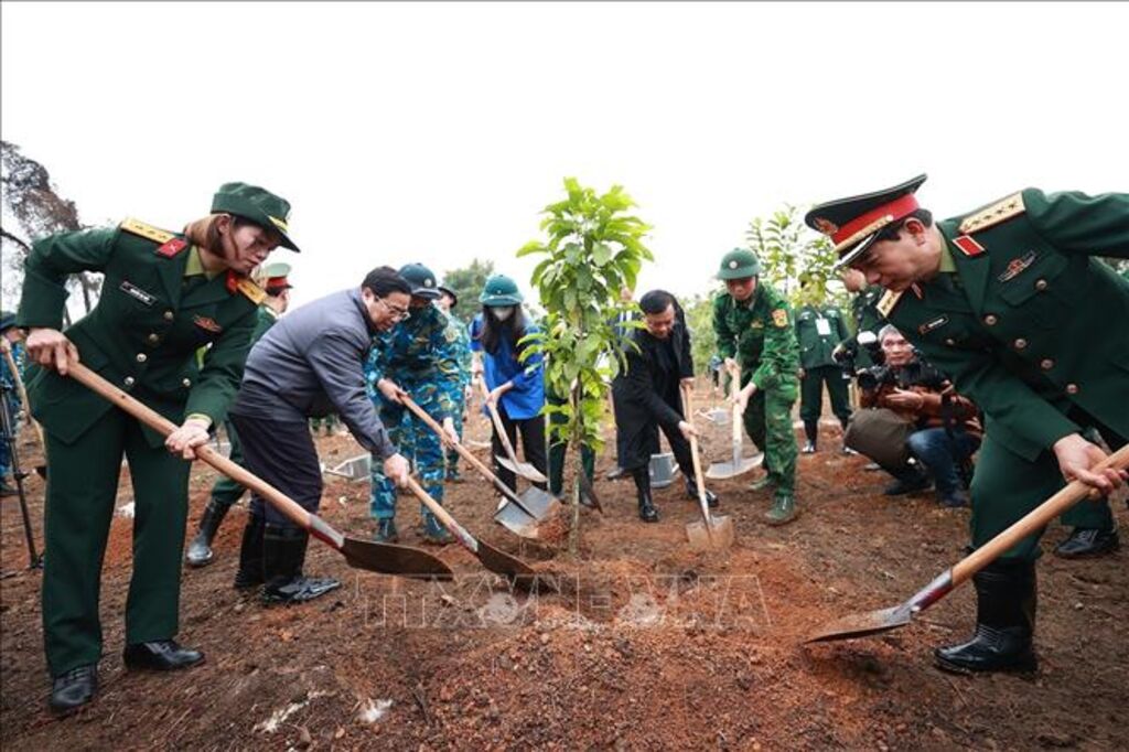 Thủ tướng Phạm Minh Chính tham gia trồng cây tại Lễ phát động "Tết trồng cây đời đời nhớ ơn Bác Hồ". (Ảnh: Dương Giang/TTXVN)