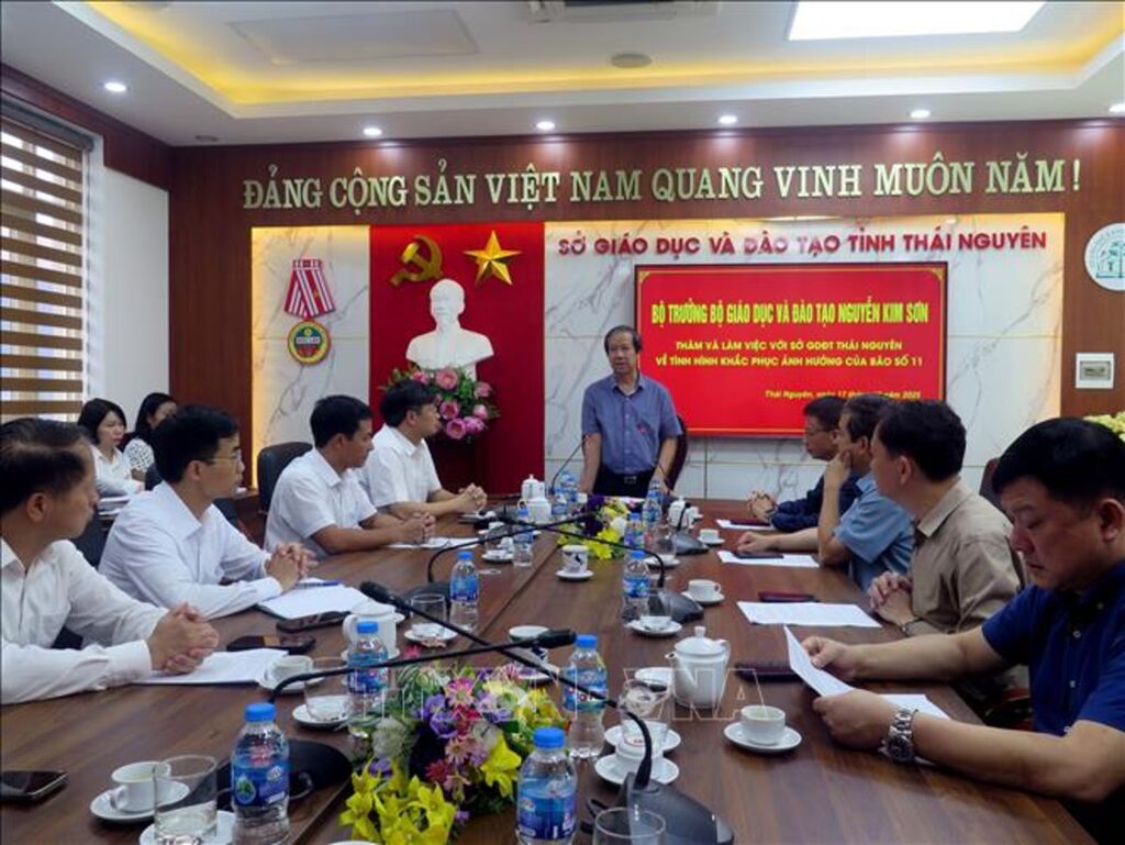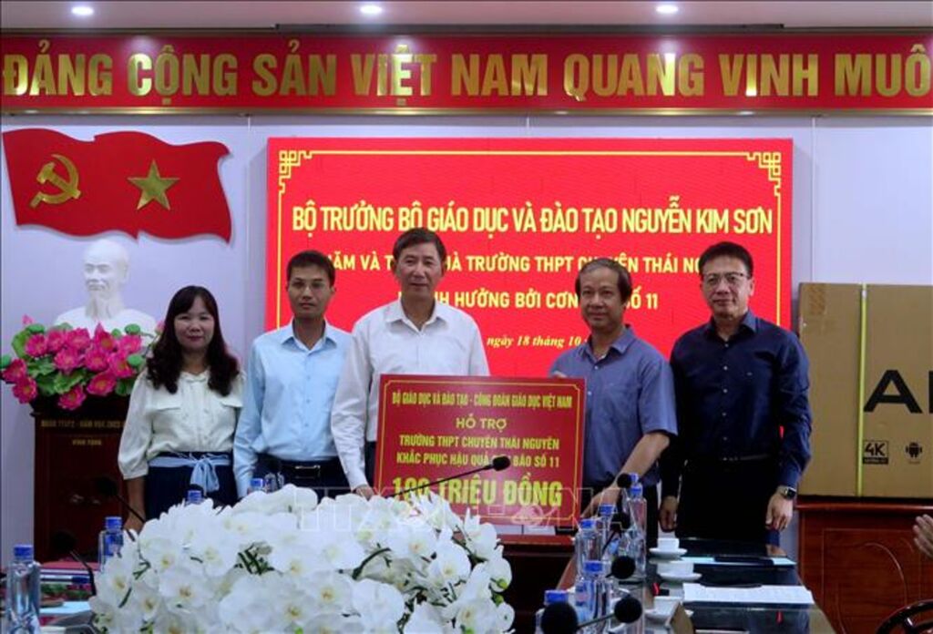 Thăm, làm việc và nắm bắt tình hình khắc phục hậu quả bão số 11 tại tỉnh Thái Nguyên vào chiều 18/10, Bộ trưởng Bộ Giáo dục và Đào tạo Nguyễn Kim Sơn đề nghị tỉnh khẩn trương khắc phục hậu quả thiên tai, sớm ổn định công tác giáo dục và đào tạo.