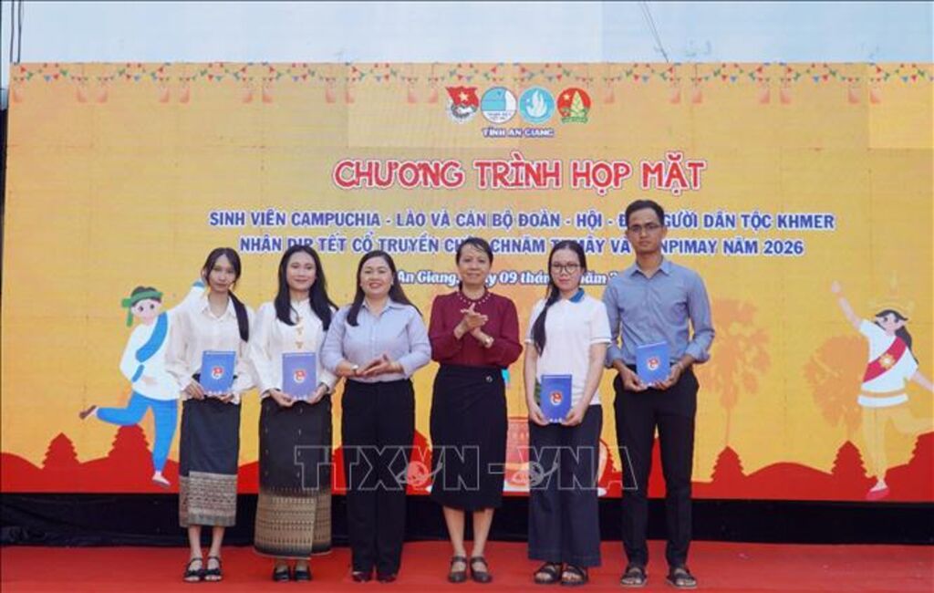 Nhân dịp Tết cổ truyền Chôl Chnăm Thmây và Bunpimay năm 2026, chiều 9/4, Tỉnh đoàn An Giang tổ chức họp mặt sinh viên Campuchia - Lào và cán bộ Đoàn, Hội, Đội người dân tộc Khmer trong tỉnh.