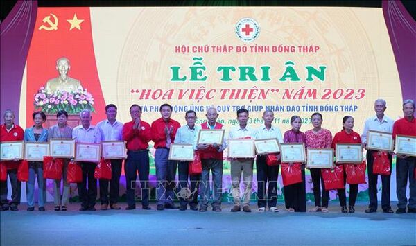 Dịp này, Ban Tổ chức trao tặng học bổng, hỗ trợ sinh kế, hỗ trợ xây dựng nhà Chữ thập đỏ cho 70 địa chỉ nhân đạo có hoàn cảnh khó khăn trên địa bàn tỉnh Vĩnh Phúc, tổng trị giá hơn 1 tỷ đồng. Hội Chữ thập đỏ tỉnh Vĩnh Phúc tri ân các tập thể, cá nhân tích cực tham gia Chương trình Tết Nhân ái và Tháng Nhân đạo hằng năm./.