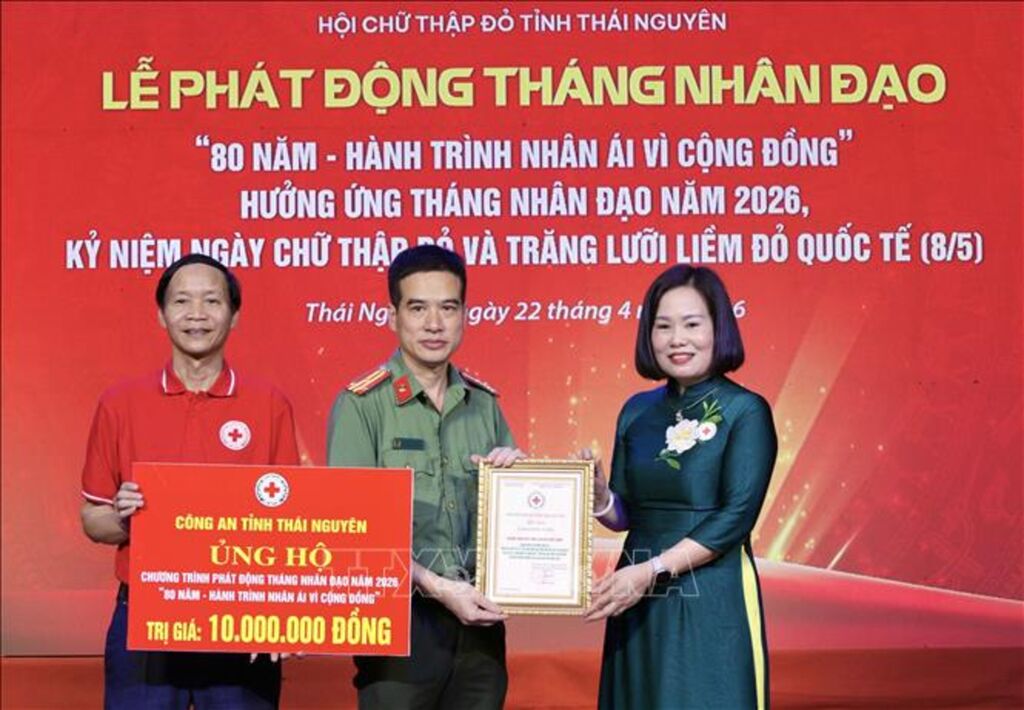 Ngày 22/4, tại tỉnh Thái Nguyên, Hội Chữ thập đỏ tỉnh tổ chức chương trình phát động “Tháng Nhân đạo” năm 2026 với chủ đề “80 năm - Hành trình nhân ái vì cộng đồng”.