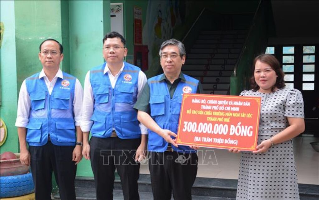 Dịp này, trong nguồn hỗ trợ 20 tỷ đồng, Đoàn công tác Thành phố Hồ Chí Minh trao tặng 300 triệu đồng để sửa chữa trường Mầm non Tây Lộc; hỗ trợ 200 triệu đồng cho hai hộ gia đình bị sập nhà tại xã Lộc An; trao quà hỗ trợ cho 78 hộ nghèo tại phường Phú Xuân, mỗi hộ gồm phần quà trị giá 500 nghìn đồng và 1,5 triệu đồng; trao hỗ trợ cho 20 cháu mầm non, mỗi cháu gồm phần quà trị giá 500 nghìn đồng và 1,5 triệu đồng.