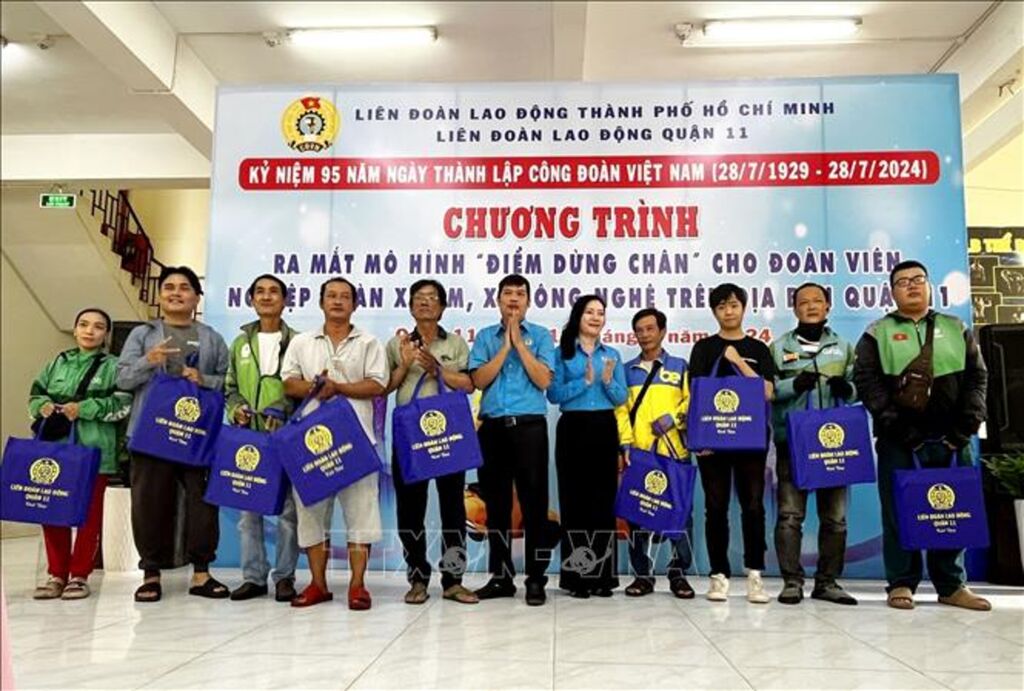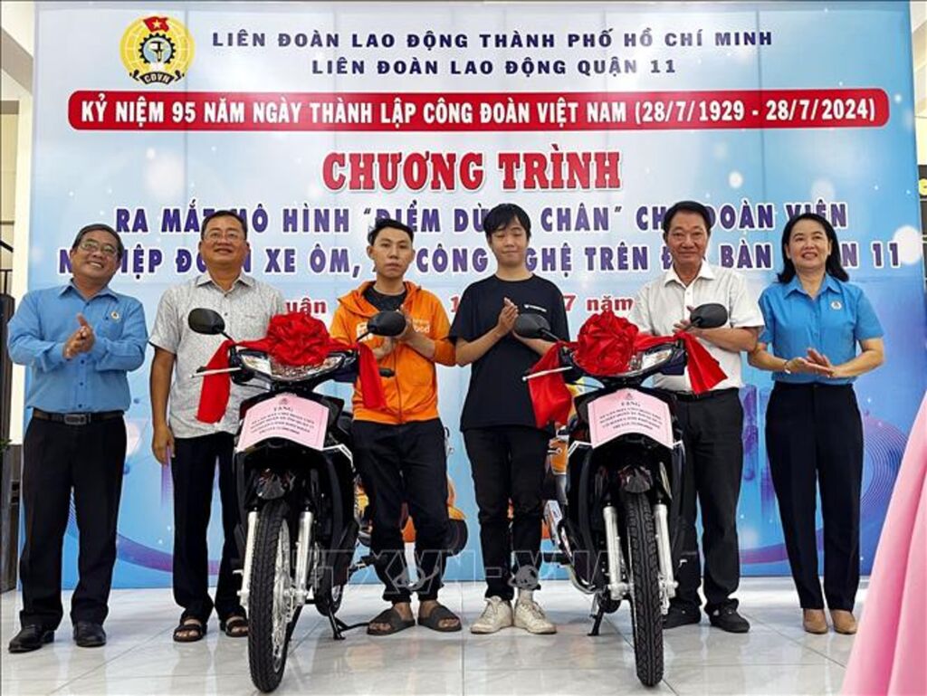 Liên đoàn Lao động Thành phố Hồ Chí Minh cùng Quận 7, Bình Thạnh, thành phố Thủ Đức cũng đã ra mắt thí điểm mô hình “Điểm dừng chân” dành cho đoàn viên nghiệp đoàn xe ôm truyền thống và xe công nghệ./.