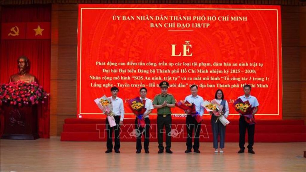 Ngày 1/10, Ban Chỉ đạo Phòng, chống tội phạm và xây dựng phong trào Toàn dân bảo vệ an ninh Tổ quốc Thành phố Hồ Chí Minh (Ban Chỉ đạo 138) phát động cao điểm tấn công, trấn áp các loại tội phạm, đảm bảo an ninh, trật tự Đại hội đại biểu Đảng bộ Thành phố nhiệm kỳ 2025 - 2030; nhân rộng mô hình “SOS an ninh, trật tự” và ra mắt mô hình “Tổ công tác 3 trong 1: Lắng nghe - tuyên truyền - hỗ trợ người dân” trên địa bàn.
