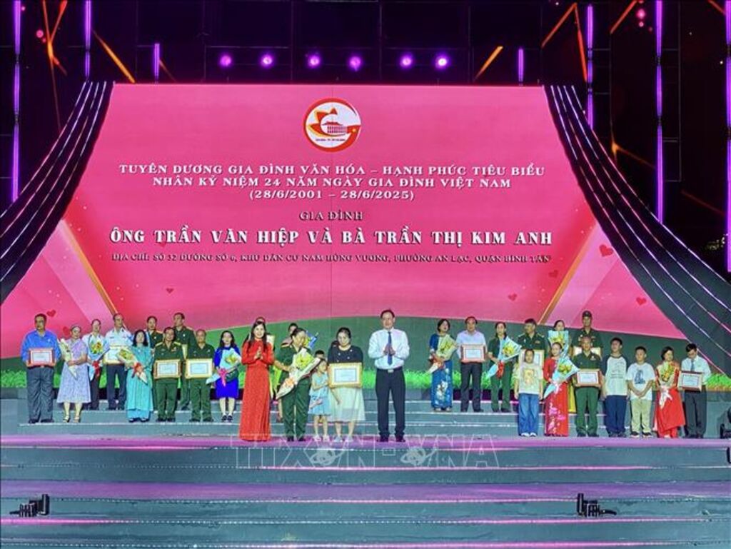 Tối 28/6, Sở Văn hóa và Thể thao Thành phố Hồ Chí Minh phối hợp Ủy ban Mặt trận Tổ quốc Việt Nam Thành phố Hồ Chí Minh tổ chức Lễ tuyên dương gia đình văn hóa – hạnh phúc tiêu biểu, nhân kỷ niệm 24 năm Ngày Gia đình Việt Nam (28/6/2001 – 28/6/2025).