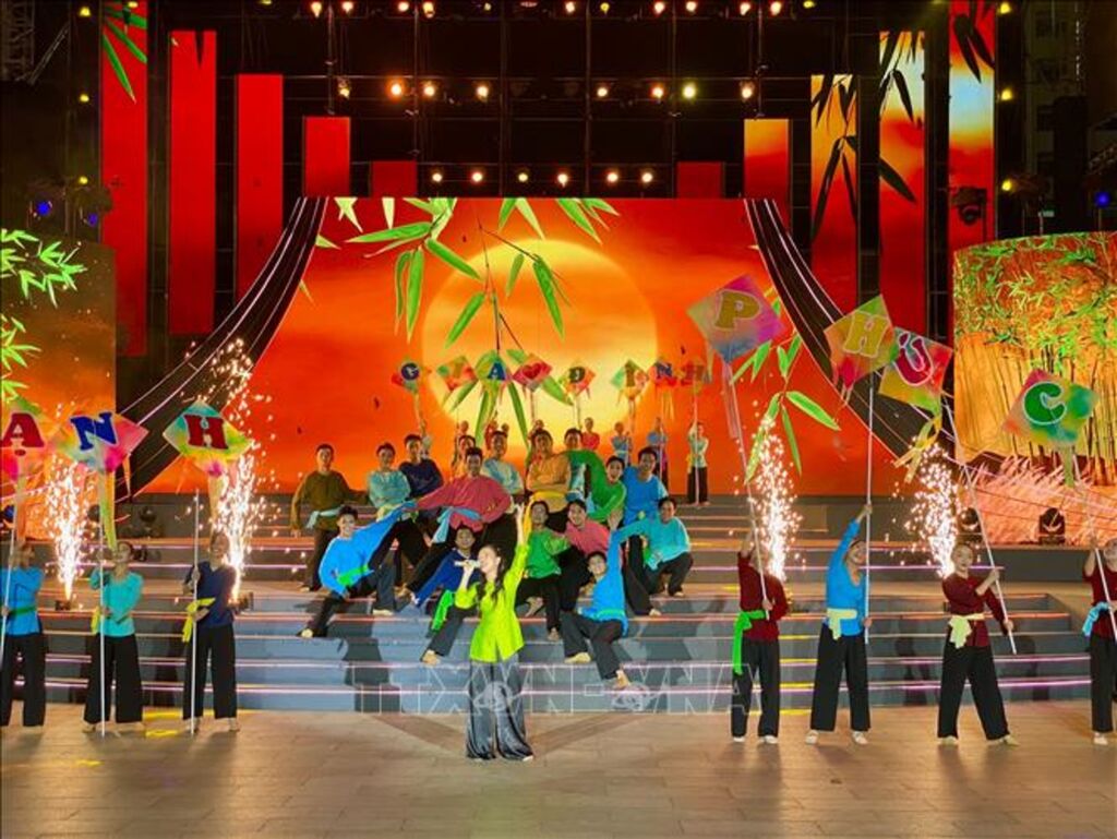 Cùng với đó, các đại biểu, người dân còn được thưởng thức chương trình biểu diễn nghệ thuật đặc sắc với sự tham gia của nhiều nghệ sỹ như Cẩm Vân, Khắc Triệu, Hoàng Bách, Nhóm Mắt Ngọc, Nhóm ca múa Thiếu nhi Bến Thành Kids…