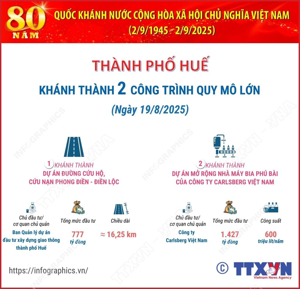 Các dự án, công trình được khởi công, khánh thành dịp này thuộc các lĩnh vực công nghiệp, giao thông, hạ tầng kỹ thuật, dân dụng đô thị, nhà ở xã hội, nông nghiệp phát triển nông thôn, quốc phòng, văn hóa thể thao, giáo dục, y tế… -