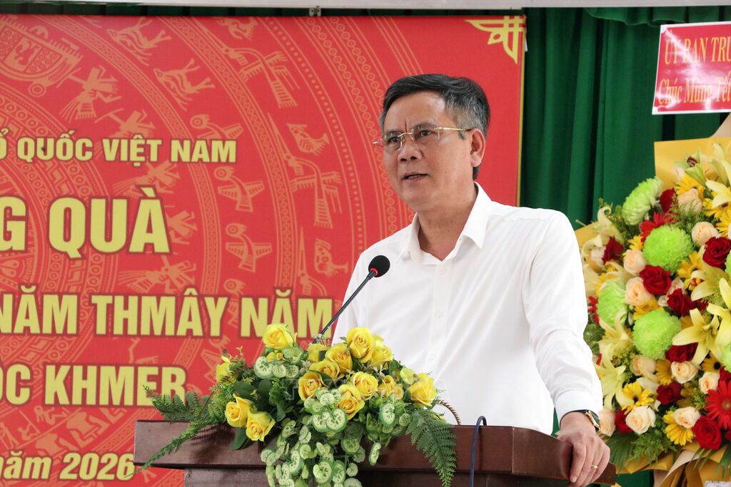 Thay mặt lãnh đạo Ủy ban Trung ương MTTQ Việt Nam, ông Trần Thắng gửi lời thăm hỏi ân cần và chúc mừng tới các vị sư sãi cùng toàn thể đồng bào Khmer nhân dịp Tết cổ truyền Chôl Chnăm Thmây.