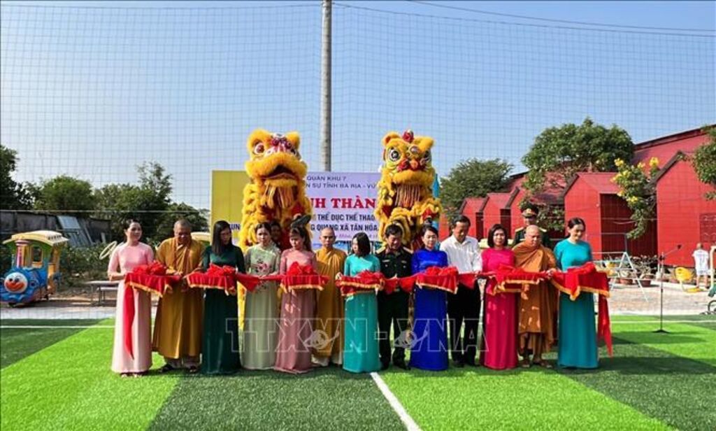 TTXVN - Ngày 4/1, Bộ Chỉ huy Quân sự tỉnh Bà Rịa - Vũng Tàu phối hợp Ủy ban nhân dân thị xã Phú Mỹ tổ chức khánh thành, đưa vào sử dụng công trình thể dục, thể thao trao tặng Trung tâm Nhân đạo Hồng Quang (xã Tân Hòa). Đây là công trình thứ 7 do Bộ Chỉ huy Quân sự tỉnh trao tặng cho các cơ sở tôn giáo trên địa bàn, góp phần xây dựng, củng cố vững chắc tình đoàn kết quân - dân, khối đại đoàn kết toàn dân tộc.
