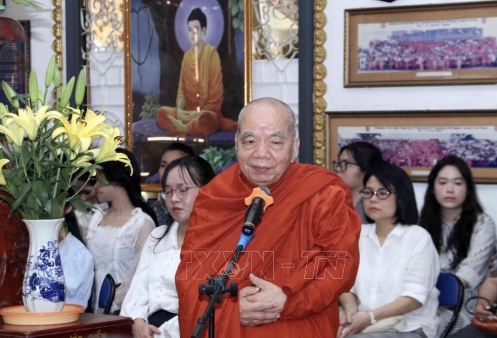 Chúc phúc các đại biểu dự lễ hội, Hòa thượng Thích Thiện Tâm, Phó Chủ tịch Hội đồng Trị sự, Phó Trưởng Ban Phật giáo Quốc tế Trung ương Giáo hội Phật giáo Việt Nam, Chứng Minh Ban Trị sự Giáo Hội Phật giáo Việt Nam Thành phố Hồ Chí Minh, Trưởng ban Phật giáo Quốc tế Giáo hội Phật giáo Việt Nam Thành phố Hồ Chí Minh chia sẻ giá trị to lớn của đại đoàn kết và hòa hợp trong cộng đồng, giữa các dân tộc và giữa các quốc gia, mang lại sức mạnh dựng xây hòa bình và thịnh vượng.