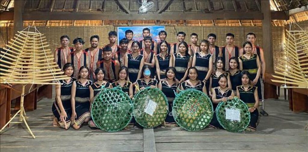 Ở nhiều buôn làng của tỉnh Gia Lai, cồng chiêng không chỉ được gìn giữ bởi các nghệ nhân cao tuổi mà đang được tiếp nối mạnh mẽ bởi lớp thanh niên – những người chủ động học hỏi, thực hành và trao truyền di sản ngay trong đời sống cộng đồng. Tại làng Kon Sơ Lăl, xã Ia Khươl, Câu lạc bộ Cồng chiêng với hơn 30 đoàn viên, thanh niên duy trì sinh hoạt định kỳ tại nhà rông. Các buổi tập không chỉ rèn luyện kỹ năng diễn tấu, mà còn gắn với việc truyền dạy cho thiếu nhi ý nghĩa văn hóa của từng bài chiêng, từng nhịp xoang, qua đó nuôi dưỡng tình yêu và ý thức gìn giữ di sản từ sớm.