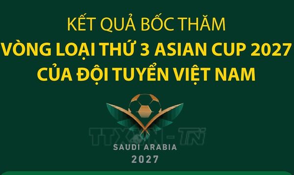 Thể thaoKết quả bốc thăm vòng loại thứ 3 Asian Cup 2027 của đội tuyển Việt NamĐây là bảng đấu được đánh giá tương đối "nhẹ nhàng" với đội tuyển Việt Nam, khi cả 3 đối thủ đều có thứ hạng thấp hơn chúng ta trên bảng xếp hạng FIFA (Việt Nam xếp hạng 116, trong khi Malaysia hạng 132, Nepal hạng 175 và Lào hạng 186).