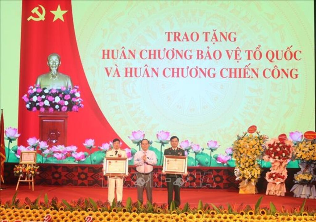 Tại Đại hội, thừa ủy quyền của Chủ tịch nước, Bí thư Tỉnh ủy Quản Minh Cường đã trao tặng Huân chương Lao động hạng Ba cho Đảng bộ, chính quyền và nhân dân tỉnh Cao Bằng đã có thành tích xuất sắc trong phát triển kinh tế, xã hội, đảm bảo an ninh - quốc phòng trong vùng đồng bào dân tộc thiểu số và biên giới, góp phần vào sự nghiệp xây dựng chủ nghĩa xã hội và bảo vệ Tổ quốc; trao Huân chương Bảo vệ Tổ quốc và Huân chương Chiến công cho 46 tập thể, cá nhân. Dịp này, 8 tập thể được tặng Cờ thi đua của Chính phủ; 87 cá nhân, tập thể được nhận Bằng khen của Thủ tướng Chính phủ vì đã có thành tích xuất sắc trong thực hiện nhiệm vụ và công tác...