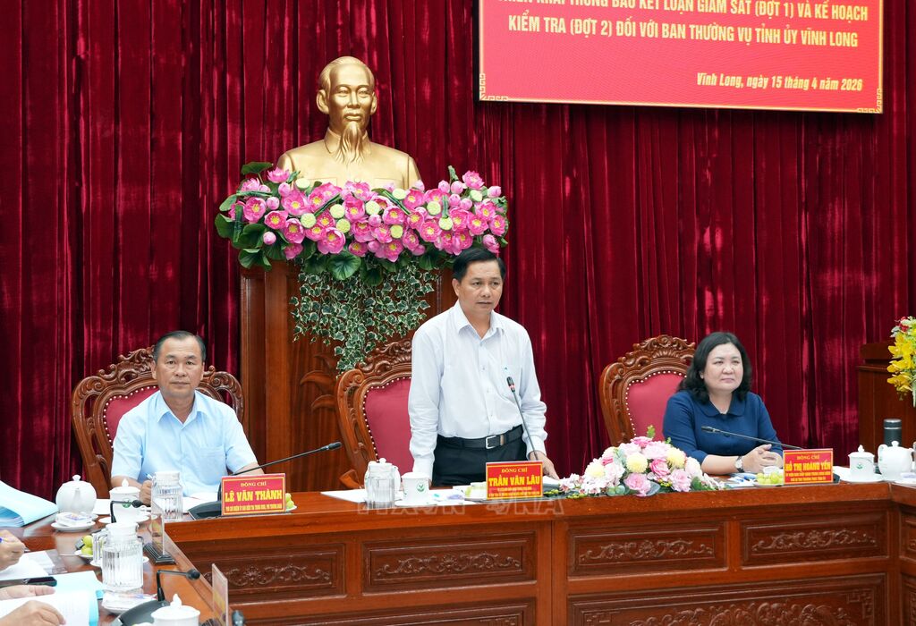 Chiều 15/4, tại Tỉnh ủy Vĩnh Long, Đoàn kiểm tra, giám sát số 23 của Bộ Chính trị, Ban Bí thư tổ chức hội nghị thông báo kết luận giám sát của Bộ Chính trị, Ban Bí thư (đợt 1) và triển khai kế hoạch kiểm tra (đợt 2) đối với Ban Thường vụ Tỉnh ủy Vĩnh Long.