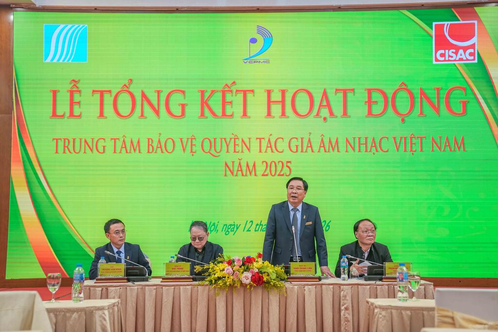 Năm 2025, Trung tâm Bảo vệ quyền tác giả âm nhạc Việt Nam (VCPMC), thuộc Hội Nhạc sĩ Việt Nam đã thu trên 424,3 tỷ đồng tiền bản quyền âm nhạc, tăng 8% so với năm 2024. Trong đó, khu vực phía Bắc thu hơn 211,4 tỷ đồng, chi nhánh phía Nam thu hơn 212,8 tỷ đồng. Thông tin trên được Nghệ sĩ Ưu tú, nhạc sĩ Đinh Trung Cẩn, Tổng Giám đốc Trung tâm Bảo vệ quyền tác giả âm nhạc Việt Nam cho biết tại Lễ tổng kết hoạt động năm 2025, diễn ra ngày 12/1, tại Hà Nội.