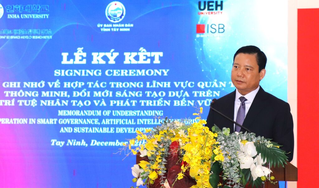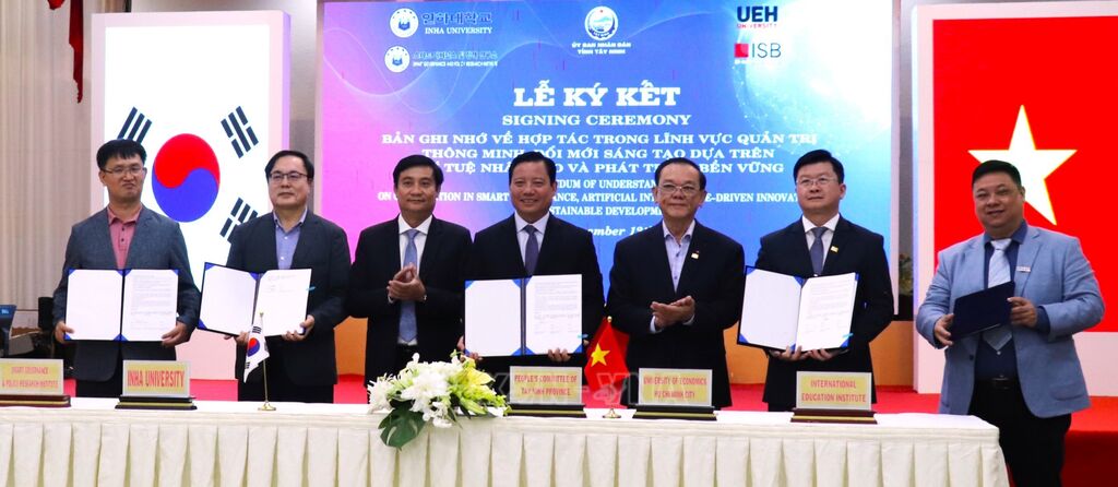 Sáng 12/12, tại phường Long An, UBND tỉnh Tây Ninh tổ chức Lễ ký kết Bản ghi nhớ hợp tác trong lĩnh vực Quản trị thông minh, Đổi mới sáng tạo dựa trên trí tuệ nhân tạo và Phát triển bền vững với Đại học Inha (Đại Hàn Dân Quốc), Đại học Kinh tế Thành phố Hồ Chí Minh, Viện Nghiên cứu Chính sách và Quản trị Thông minh (Đại Hàn Dân Quốc) và Viện Đào tạo Quốc tế. Đây là bước đi quan trọng nhằm đẩy mạnh hội nhập, thu hút tri thức quốc tế và thúc đẩy chuyển đổi số dựa trên nền tảng công nghệ cao.
