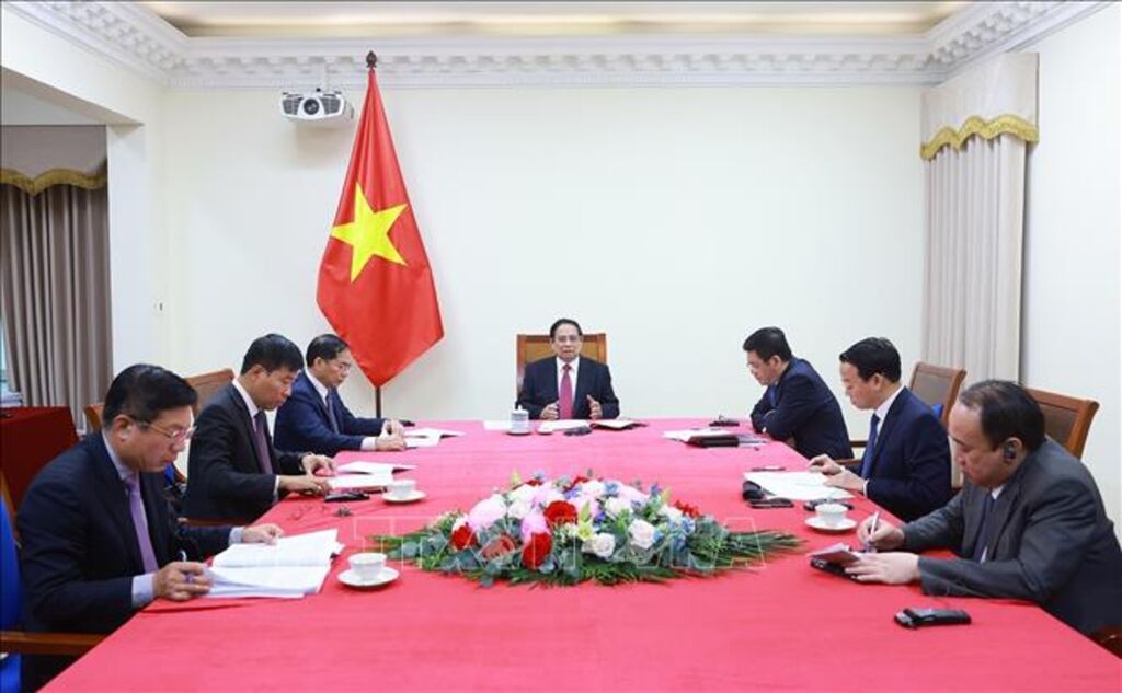 Thủ tướng đánh giá cao những diễn biến tích cực, trong đó có việc Tổng thống Donald Trump vừa công bố tạm hoãn áp thuế đối ứng với nhiều đối tác thương mại trong vòng 90 ngày; nhấn mạnh Việt Nam sẽ tiếp tục tích cực trao đổi với các cơ quan liên quan của Hoa Kỳ nhằm hướng tới một khuôn khổ hợp tác thương mại bảo đảm lợi ích hài hòa của cả hai bên cũng như lợi ích chính đáng của người dân, doanh nghiệp hai nước.